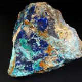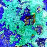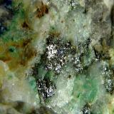 90 x 52 mm (Autor: Sante Celiberti)Smithsonita, Malaquita, Calcopirita, Cuarzo