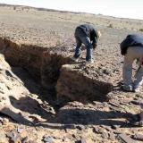 Afloramiento de areniscas y arcillas de edad ordovicica con numerosos trilobites onnia superba y ofiuras.