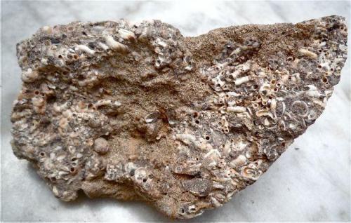 Arenisca caliza con fósiles. En la arenisca hay un pequeño porcentaje de arena volcánica.