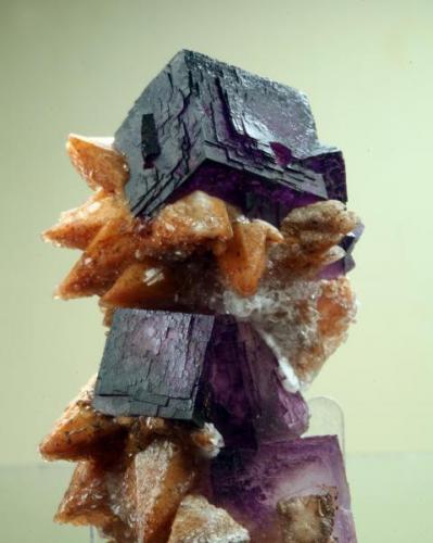 Ejemplar de fluorita sobre calcita procedente de la mina "Wenshan". Arista del cubo 3 cm.
