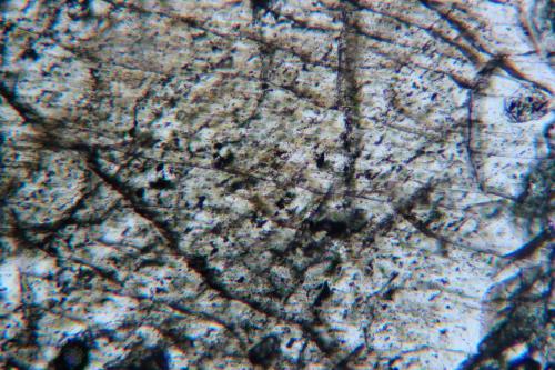 Numerosas inclusiones orientadas en una dirección bien definida. Este tipo de inclusiones se considera responsable por reflexiones e iridiscencias en algunos minerales, se le conoce como estructura o efecto Schiller. Ejemplo de esto es la Broncita, nombre en desuso incluido hoy en día bajo la denominación de Enstatita. Luz plana polarizada. (Autor: Vinoterapia)
