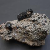 4,5 x 3,5 cm. El cristal mayor mide 2,2 cm. (Autor: Antonio Alcaide)Casiterita